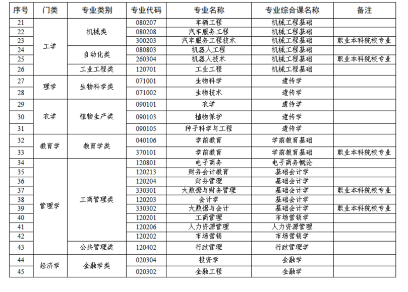 各专业对应的专业基础课考试科目如下。最终专业基础课考什么科目,取决于招生院校公布的院校专业目录。